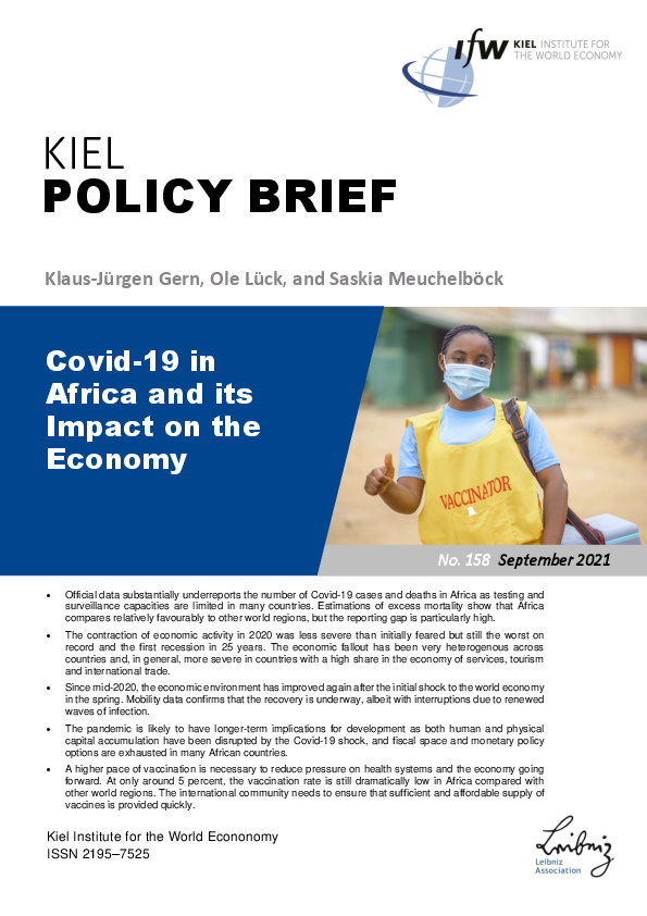 Official data substantially underreports the number of Covid-19 cases and deaths in Africa as testing and surveillance capacities are limited in many countries. Estimations of excess mortality show that Africa compares relatively favorably to other world regions, but the reporting gap is particularly high. The authors show that the contraction of economic activity in 2020 was less severe than initially feared but still the worst on record and the first recession in 25 years —with a significant variation across countries. Despite the beginning recovery, the authors expect that the pandemic is likely to have longer-term implications for development as both human and physical capital accumulation have been disrupted by the Covid-19 shock, and fiscal space and monetary policy options are exhausted in many African countries. To reduce the foreseeable pressure on health systems and the economy, the dramatically low vaccination rate of about 5 percent in Africa has to be increased. The international community needs to ensure that a sufficient and affordable supply of vaccines is provided quickly.
