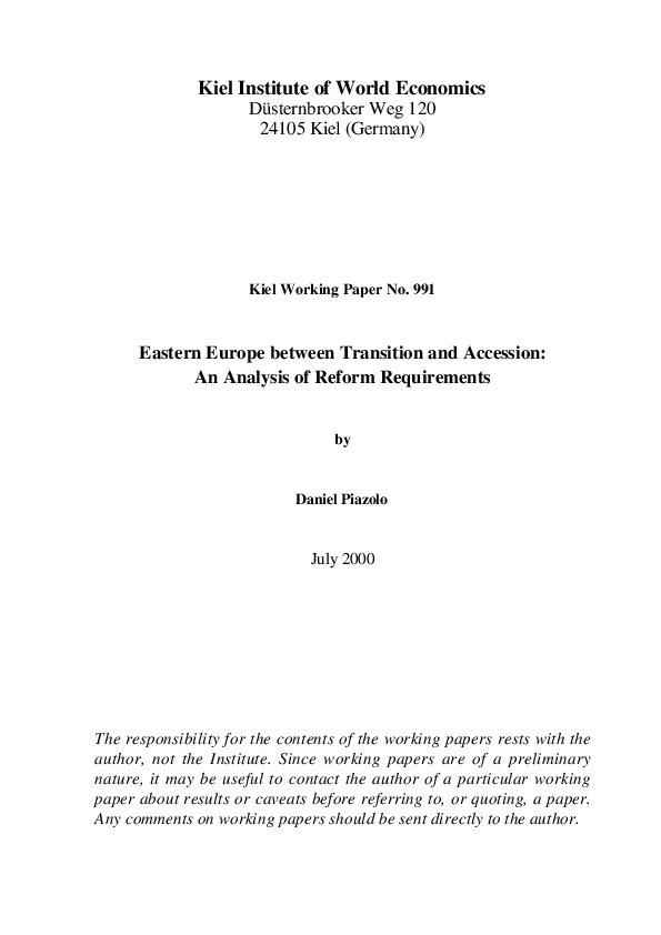 Eastern Europe between Transition and Accession: An Analysis of Reform Requirements