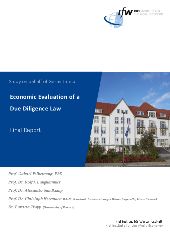 In a study commissioned by Gesamtmetall, the Kiel Institute for the World Economy examines the effects of the German Due Diligence Act, which was passed by the Bundestag in June 2021. The planned EU directive is also addressed. The law will increase costs and risks for companies trading with suppliers in poorer countries with weak institutions. It can therefore be assumed that German companies will reduce the number of suppliers from these countries or withdraw from them altogether. This development weakens the development-promoting integration of these companies into global value chains, which can lead to a reduction in per capita income in poor countries. At worst, the human rights situation in some countries could worsen. Effective supply chain legislation should not increase trade costs with poorer countries in order to avoid negative effects on the ground. The study therefore proposes a so-called "negative list approach", i.e. sanctioning foreign enterprises which disregard human rights. This would be cheaper and more effective in strengthening human rights in third countries.