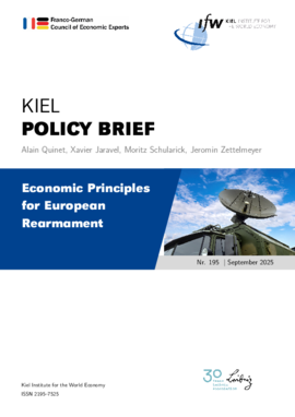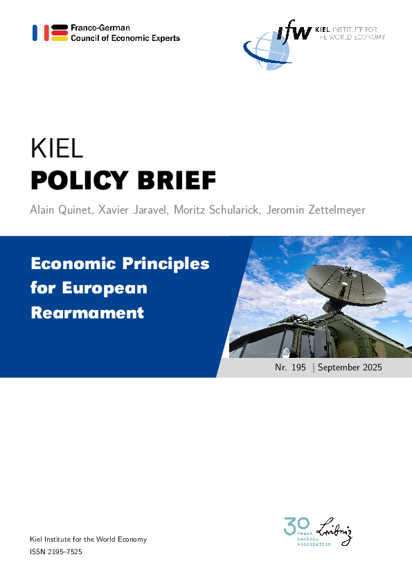 • We present five guiding principles for European rearmament. Europe’s rearmament should be (i) innovation-driven to support European technological capabilities, competitiveness, and productivity growth; (ii) aim for a rapid increase in production capacities for a high-low mix of military capabilities; (iii) rely on quantitative goalpost for R&D expenditures and an unmanned autonomous systems; (iv) build on independent European capabilities alongside NATO to reduce dependence on increasingly unreliable American assets; (v) substantially increase military support for Ukraine as the cost-efficient way towards European security in the short-run.