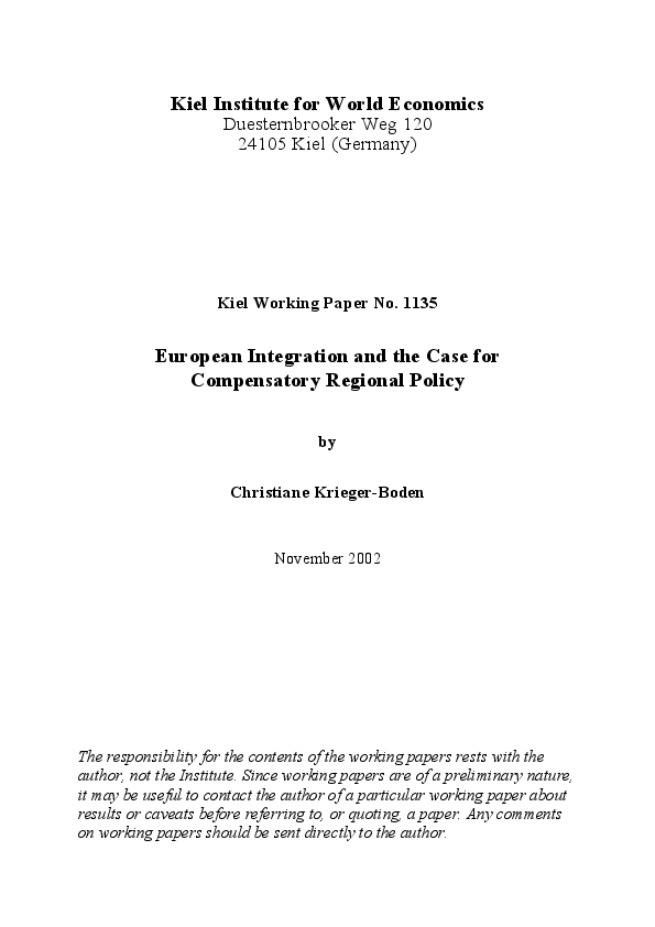 The ongoing process of European integration is likely to increase trade and factor mobility thereby increasing interregional competition and affecting the interregional division of labor. From a theoretical standpoint, rising specialization and polarization of European regions may result from this process, and may entail a growing core-periphery-divide of regional income. Such a supposition evokes questions on the need of an accompanying compensatory regional policy and its adequate design. I find that a case for regional policy cannot be denied, but that the EU largely overstates the need for such a policy at EU level, and should abstain from direct structural interventions into regional economies.