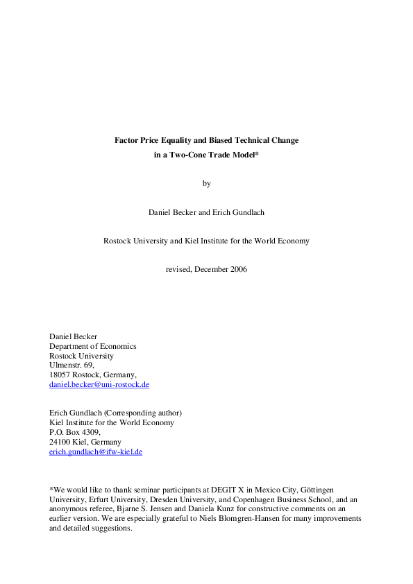 Factor Price Equality and Biased Technical Change in a Two-Cone Trade Model