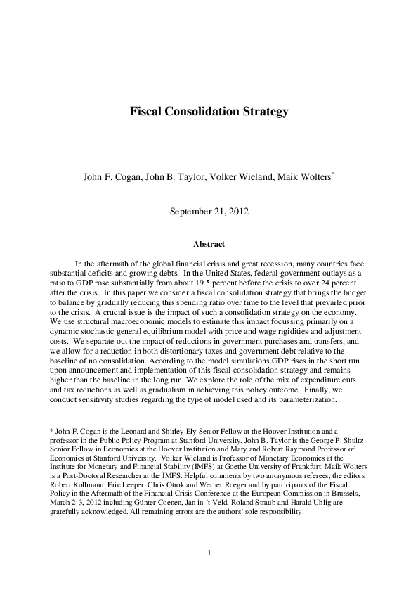 after the crisis. In this paper we consider a fiscal consolidation strategy that brings the budget