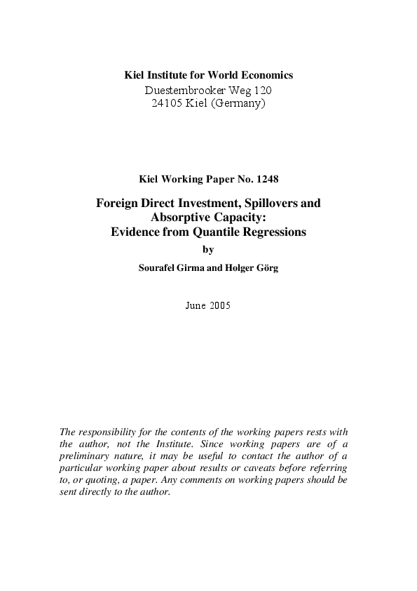 Foreign Direct Investment, Spillovers and Absorptive Capacity: Evidence from Quantile Regressions