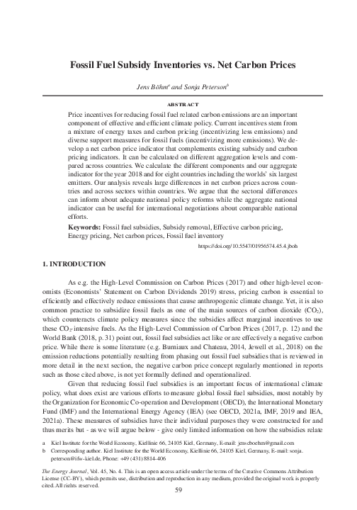 Fossil Fuel Subsidy Inventories vs. Net Carbon Prices