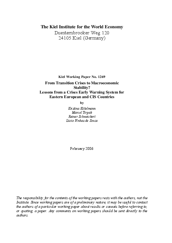 From Transition Crises to Macroeconomic Stability? Lessons from a Crises Early Warning System for Eastern European and CIS Countries