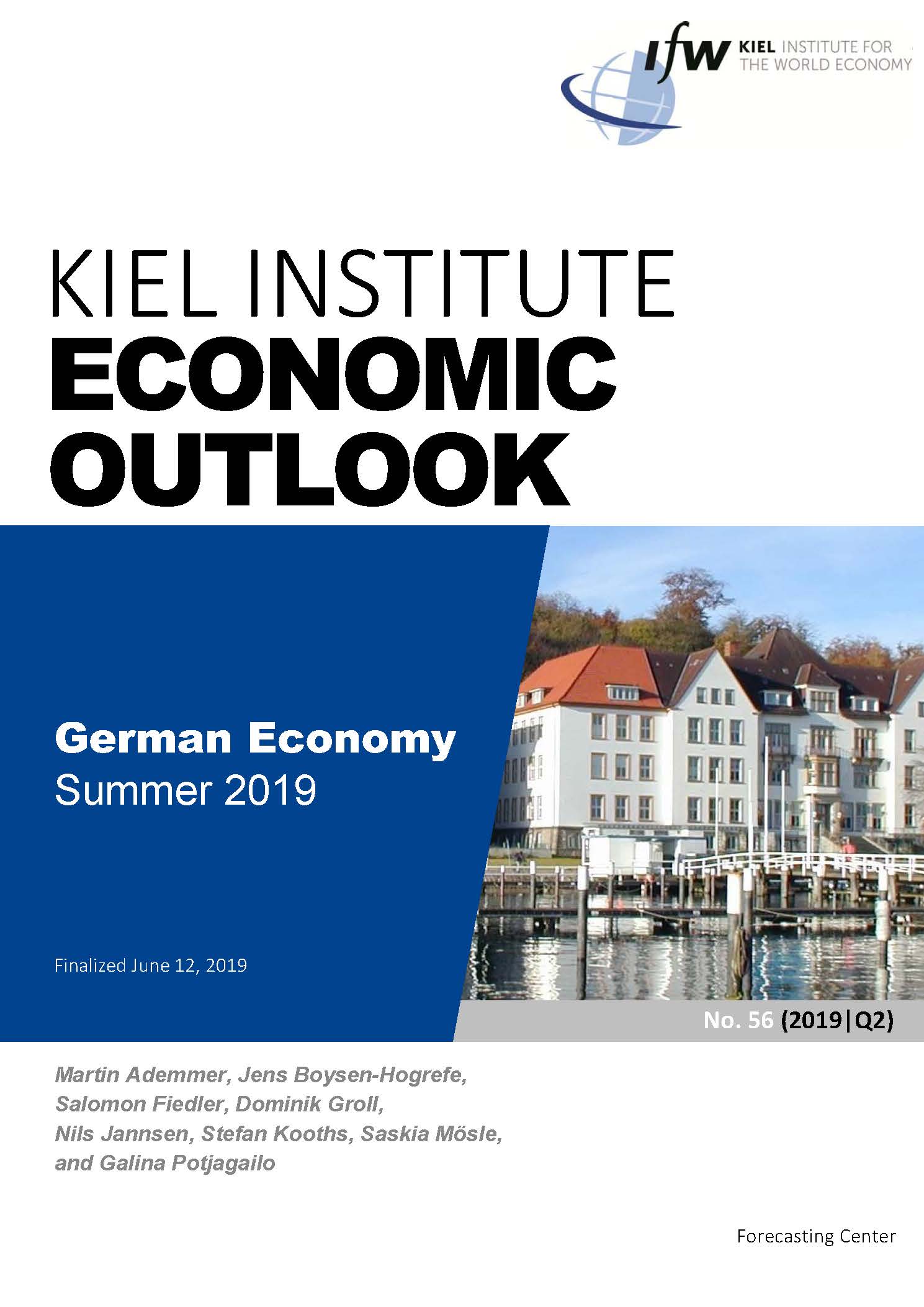 The German economy is facing strong headwinds. In recent months, economic momentum has continued to slow down and companies are much more pessimistic about the future. The high level of global economic policy uncertainty likely was an important contributing factor. Gross domestic product (GDP) even threatens to decline in the second quarter. We therefore lower our forecast for GDP growth to 0.6 percent in the current year (spring forecast: 1 percent) and 1.6 percent in the coming year (1.8 percent). In the second half of the year, aggregate production is expected to trend up again, albeit at only a moderate pace. One reason for this is that private consumption, after having taken a short break in the second quarter following the very high growth rate at the beginning of the year, is likely to grow noticeably again, in line with the continued strong increase in incomes. Exports, which have lately remained well behind the relatively robust expansion of the global economy, are likely to gradually regain their footing. Construction investment is set to retain its pronounced upward momentum, even though persisting capacity constraints will lead to further sharp rises in construction prices. However, due to the gloomy sales and earnings outlook, no more impetus can be expected from business investment. The slower economic development will also leave its mark on the labor market. Especially in the manufacturing sector, more and more companies are planning to reduce their workforce. In addition, it seems that even if companies still have vacancies to be filled, they continue to face difficulties in finding workers with adequate skills. Against this backdrop, government budget surpluses are set to decline markedly, as the slower pace of economic activity will weigh on revenue while, according to plans, spending will increase significantly.