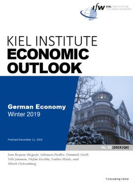 The German economy is recovering only gradually. After a weak summer half-year, gross domestic product will hardly do more than stagnate in the final quarter of the current year. Economic activity still provides two contrasting pictures. The main reason for the ongoing downturn, which began last year, is the significant decline in industrial production. This was mainly due to the gloomy global economic environment, since reduced investment worldwide due to the high level of global economic uncertainty had a particularly negative impact on the German economy, which is specialized in the production of capital goods. In the meantime, the investment climate in Germany has also deteriorated noticeably. As a result, companies are likely to significantly reduce their investment activity in the coming quarters. The weak industrial economy is also increasingly affecting the industry-related services companies. In contrast, the consumer-related service sectors continue to expand. Despite the fact that employment growth has now slowed considerably, disposable incomes of private households continue to rise significantly. In addition to wage increases which continue to be quite strong, numerous income-increasing fiscal policy measures are also contributing to this. The construction industry is still booming, not least due to the continuing favorable financing conditions. Over the course of the coming year, overall economic production should gradually pick up again somewhat. This is supported by the slight recovery in the global economy. As a result, industrial production should find its bottom and at least pick up again somewhat. At 1.1 percent, GDP growth in 2020 is likely to be much higher than in the current year, where an increase by 0.5 percent is expected. However, the higher growth rate in the coming year is primarily due to the higher number of working days. Against this backdrop, the surpluses of public budgets will decline significantly: While spending will continue to expand strongly, revenues will be noticeably burdened by the weak economy. After the record surplus of over 60 billion euros in 2018, we expect a slight deficit in 2021.