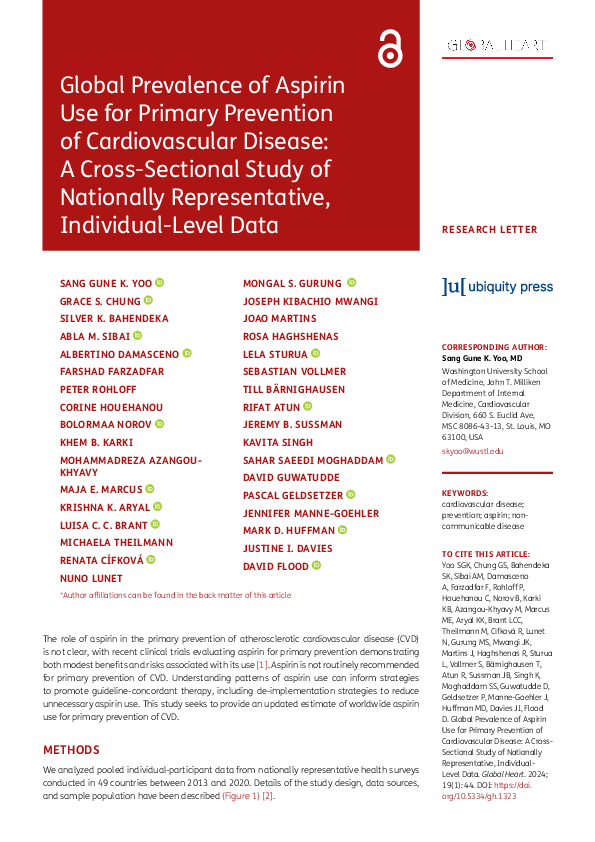 Global Prevalence of Aspirin Use for Primary Prevention of Cardiovascular Disease: A Cross-Sectional Study of Nationally Representative, Individual-Level Data