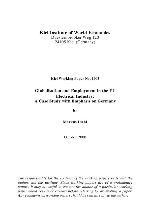 Globalisation and Employment in the EU Electrical Industry: A Case Study with Emphasis on Germany