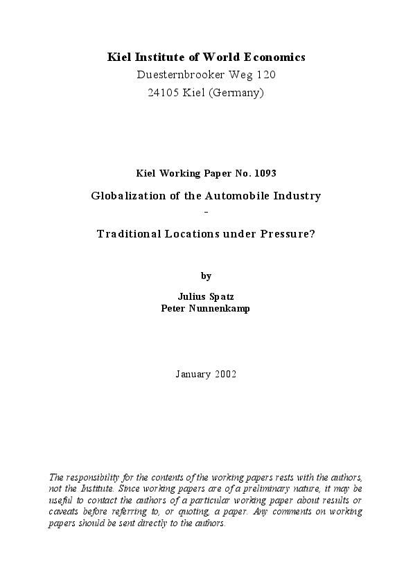 Globalization of the Automobile Industry - Traditional Locations under Pressure?