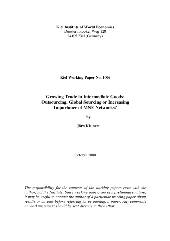 Growing Trade in Intermediate Goods: Outsourcing, Global Sourcing or Increasing Importance of MNE Networks?
