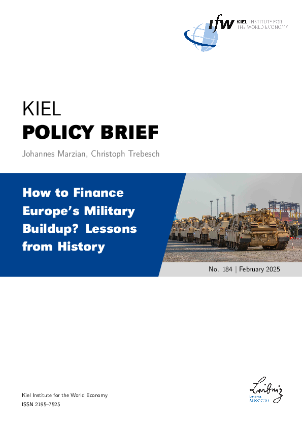 - In line with history and theory, Germany and Europe should again rely on debt financing to quickly increase its defense spending and military capabilities. To deal with the added debt burden in the medium run, governments could increase taxes, reduce subsidies and tax avoidance, and freeze the growth of social spending.