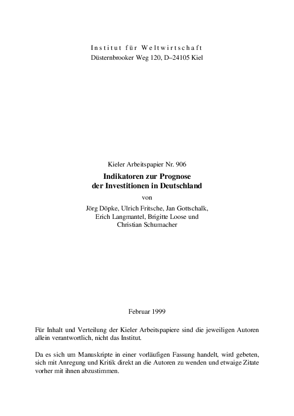 Indikatoren zur Prognose der Investitionen in Deutschland