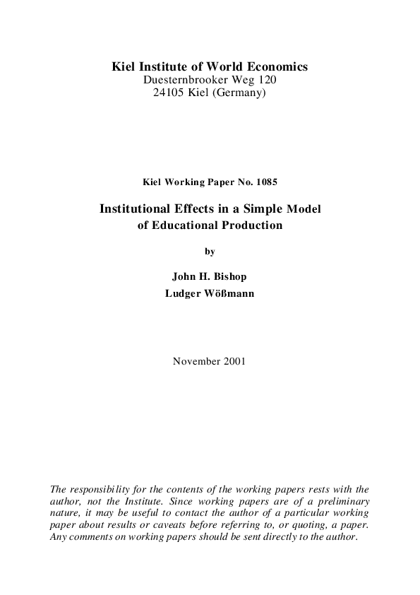 The paper presents a model of educational production which tries to make sense of recent evidence on effects of institutional arrangements on student performance. In a simple principal-agent framework, students choose their learning effort to maximize their net benefits, while the government chooses educational spending to maximize its net benefits. In the jointly determined equilibrium, schooling quality is shown to depend on several institutionally determined parameters. The impact on student performance of institutions such as central examinations, centralization versus school autonomy, teachers' influence, parental influence, and competition from private schools is analyzed. Furthermore, the model can rationalize why positive resource effects may be lacking in educational production.