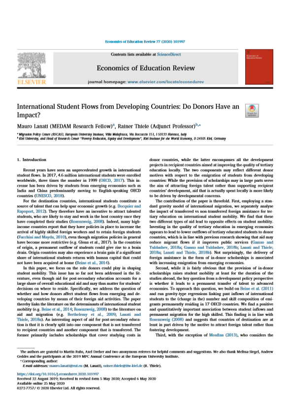 International student flows from emerging and developing countries have grown tremendously over the last decades. In this paper, we address the question of whether donors, who might care about the potential brain drain effects student emigration entails in the countries of origin, can affect the student outflows through their foreign aid activities. Employing standard gravity-type approaches of international migration, we separately analyse the impact of scholarships for students from developing countries, and of development projects in recipient countries aimed at improving the local quality of tertiary education. We find that these two types of post-secondary aid lead to opposite effects on student mobility. Investing in the quality of tertiary education in recipient countries appears to be associated with lower outflows of tertiary educated students to donor countries, which corroborates previous research showing that aid may reduce emigration from developing countries if it improves public services. The provision of in-donor scholarships obviously raises student mobility for the duration of the university education abroad, but our results suggest that the student inflows also translate into permanent immigration of highly educated people.