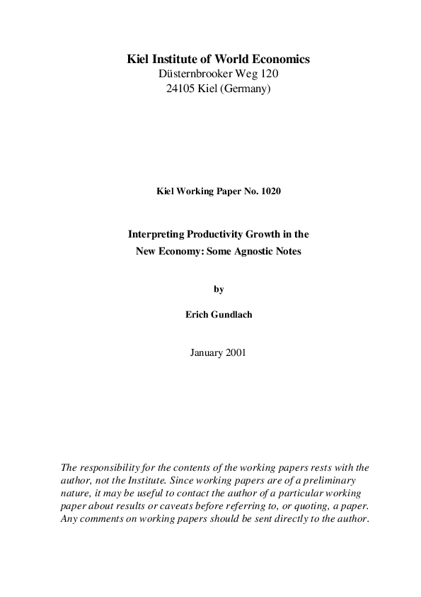 Interpreting Productivity Growth in the New Economy: Some Agnostic Notes