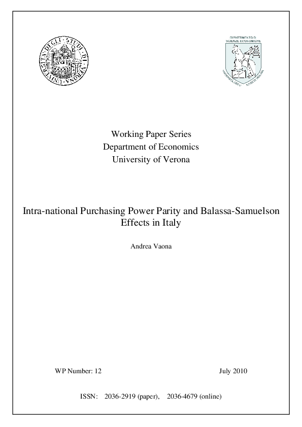 Intra-national Purchasing Power Parity and Balassa-Samuelson Effects in Italy