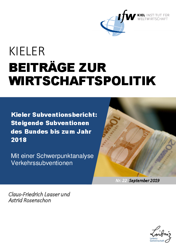 Kiel Subsidy Report: Rising federal subsidies up to 2018 - With a focus analysis on transport subsidies (in German)