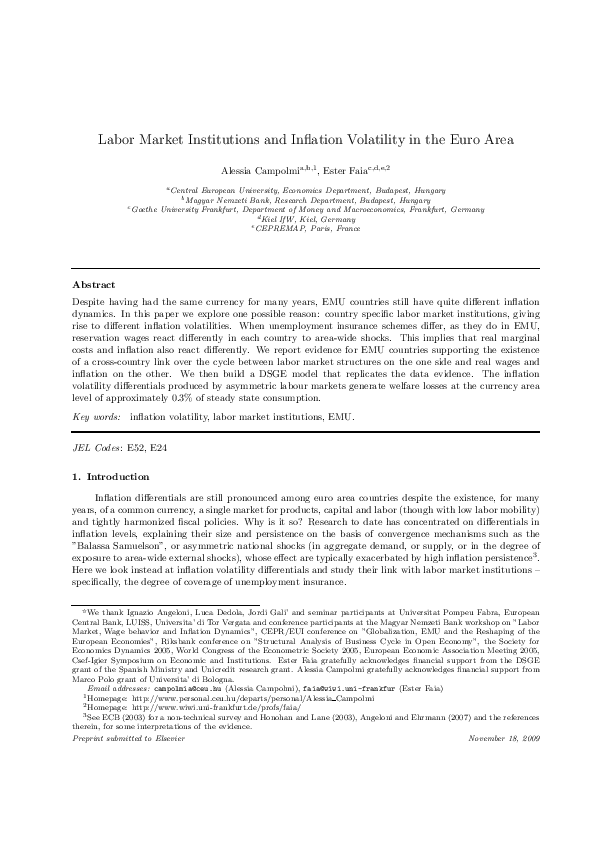 Labor Market Institutions and Inflation Volatility in the Euro Area