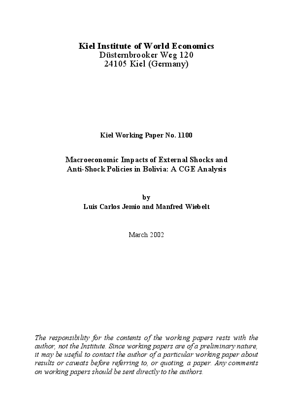 Macroeconomic Impacts of External Shocks and Anti-Shock Policies in Bolivia: A CGE Analysis