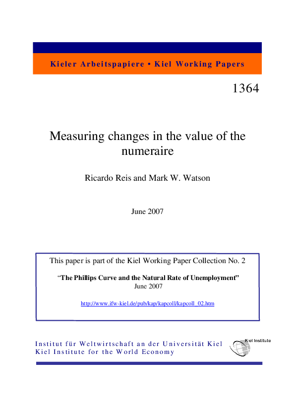 This paper estimates a common component in many price series that has an equiproportional effect on all prices. Changes in this component can be interpreted as changes in the value of the numeraire since, by definition, they leave all relative prices unchanged. The first aim of the paper is to measure these changes. The paper provides a framework for identifying this component, suggests an estimator for the component based on a dynamic factor model, and assesses its performance relative to alternative estimators. Using 187 U.S. time-series on prices, we estimate changes in the value of the numeraire from 1960 to 2006, and further decompose these changes into a part that is related to relative price movements and a residual ‘exogenous’ part. The second aim of the paper is to use these estimates to investigate two economic questions. First, we show that the size of exogenous changes in the value of the numeraire helps distinguish between different theories of pricing, and that the U.S. evidence argues against several strict theories of nominal rigidities. Second, we find that changes in the value of the numeraire are significantly related to changes in real quantities, and discuss interpretations of this apparent non-neutrality.