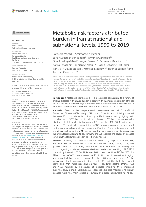 Metabolic Risk Factors Attributed Burden in Iran at National and Subnational Levels, 1990 to 2019