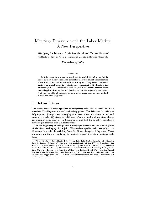 Monetary Persistence and the Labor Market: A New Perspective