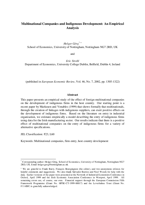 Multinational Companies and Indigenous Development: An Empirical Analysis