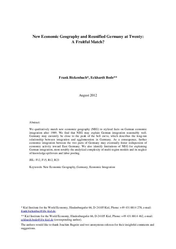 New Economic Geography and Reunified Germany at Twenty: A Fruitful Match?