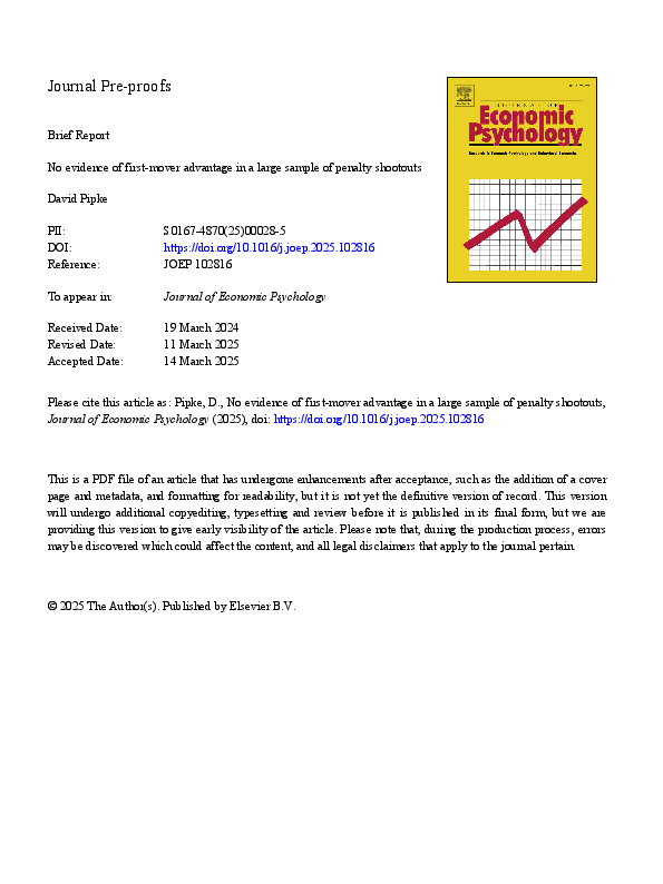 No evidence of first-mover advantage in a large sample of penalty shootouts