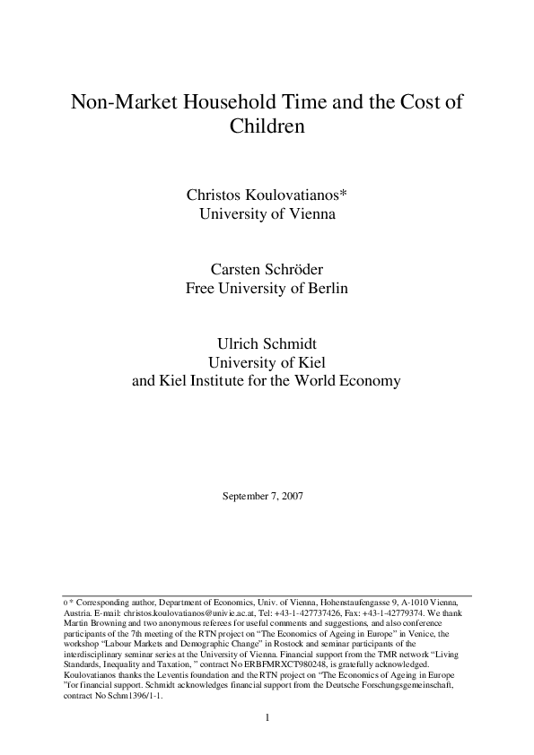 A distinguishing feature among households is whether adult members work or not, since the occupational status of adults affects their available time for home activities. Using a survey method in two countries, Belgium and Germany, we provide household incomes that retain the level of well-being across different family types, distinguished by family size and occupational status of adults. Our tests support that childcare-time costs are important determinants of household well-being. Estimates of child costs relative to an adult are higher for households that are time-constrained (all adults in the household work). Moreover, we find supportive evidence for the hypothesis that, in two-adult households, there is a potential for within-household welfare gains from specialization in market- vs. domestic activities, especially childcare.