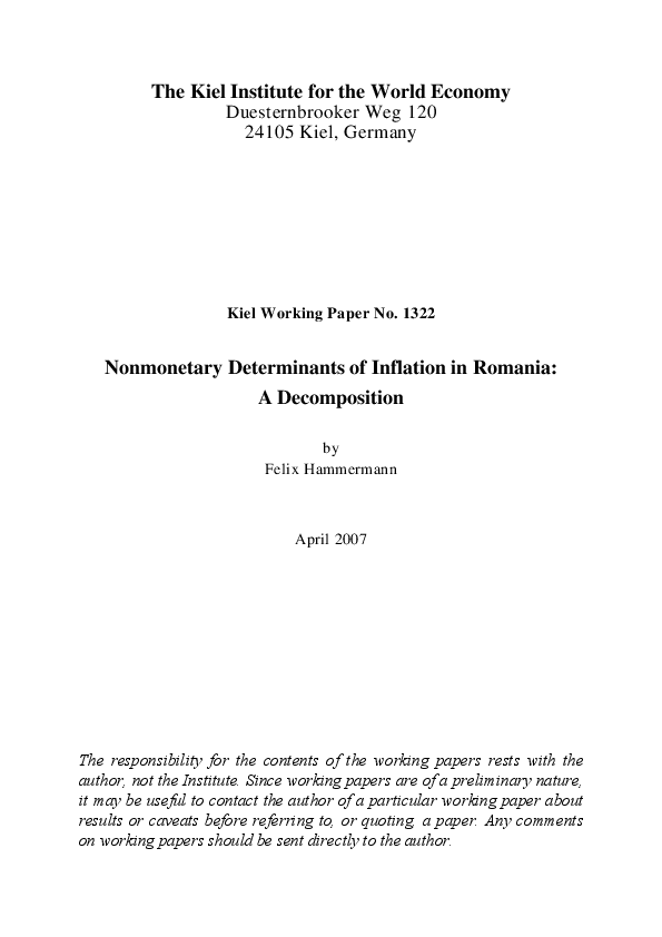 Nonmonetary Determinants of Inflation in Romania: A Decomposition