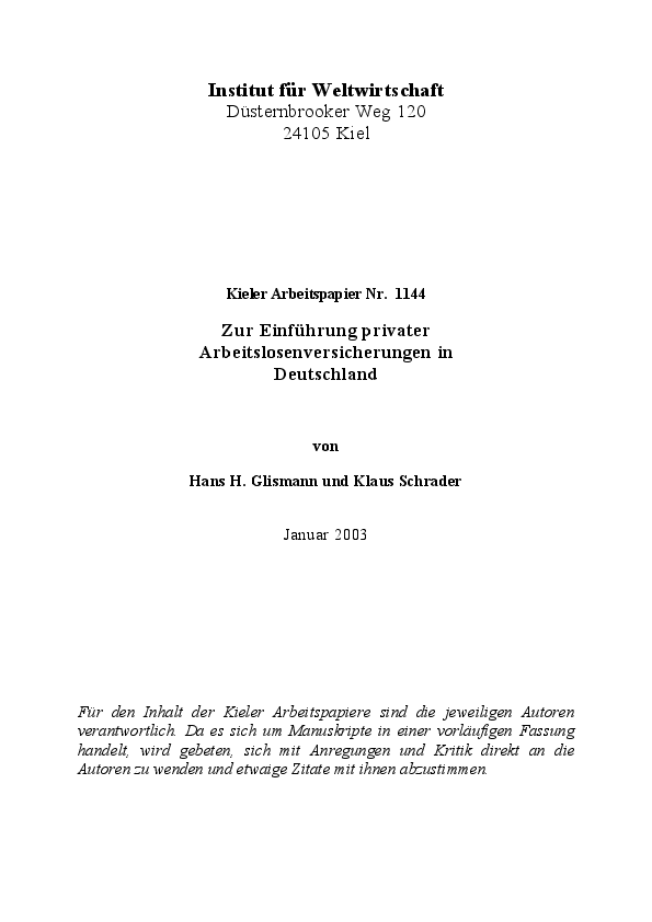 On the introduction of private unemployment insurance in Germany (original publication in German)