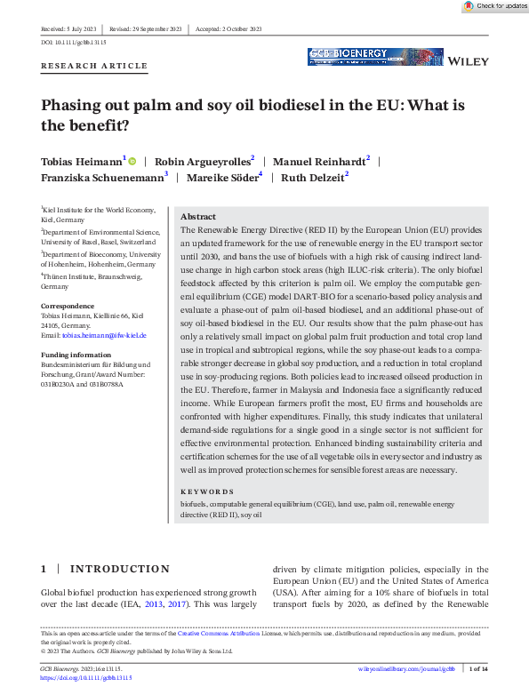 Phasing out palm and soy oil biodiesel in the EU: What is the benefit?