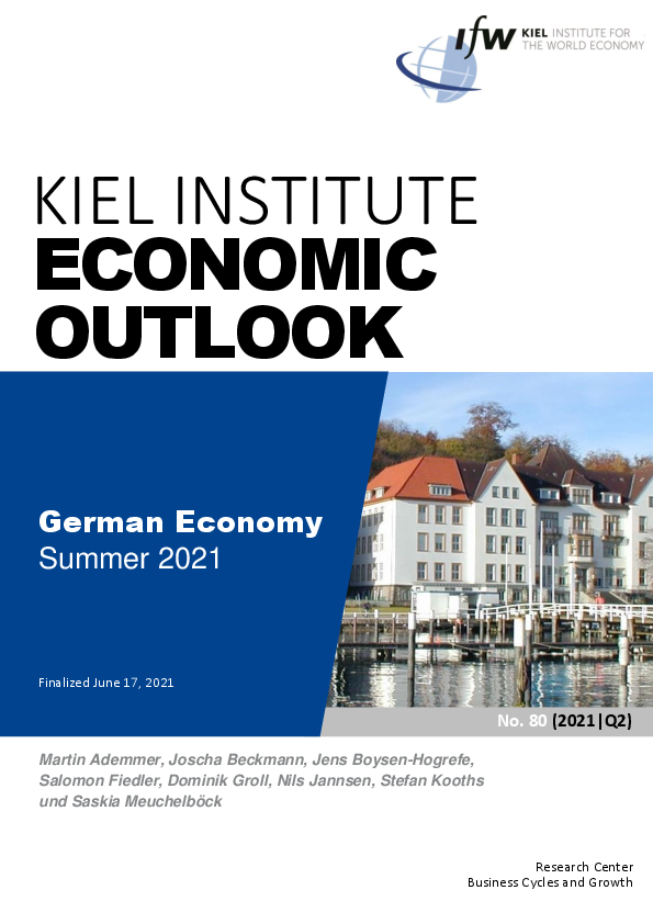 The German economy is picking up speed again. After the resurgence of the Covid-19 pandemic had interrupted the economic recovery in the winter half-year, GDP will expand at a fast pace in the further course of the year and exceed its pre-crisis level again. With the removal of the pandemic-related restrictions, activity will rebound, especially in those areas that were previously particularly burdened. Retail trade and contact-intensive services in particular are likely to benefit from the rebound in private household consumption. For the time being, however, the recovery will be delayed in the manufacturing industry. The strong global recovery has brought with it multi-layered supply bottlenecks that are noticeably hampering production in many firms. Despite the very good order situation, production in the manufacturing industry will therefore probably only gradually return to its recovery path in the second half of the year, provided that the supply bottlenecks then gradually ease. With the supply bottlenecks, price pressures have also increased, especially as economic momentum is high worldwide. Thus, prices for raw materials, intermediate goods and transport services have recently been on a broad upward trend. All in all, GDP is expected to grow by 3.9 percent this year and by 4.8 percent in 2022. Consumer prices will rise at a much faster rate of probably 2.6 percent this year and by around 2 percent in 2022.