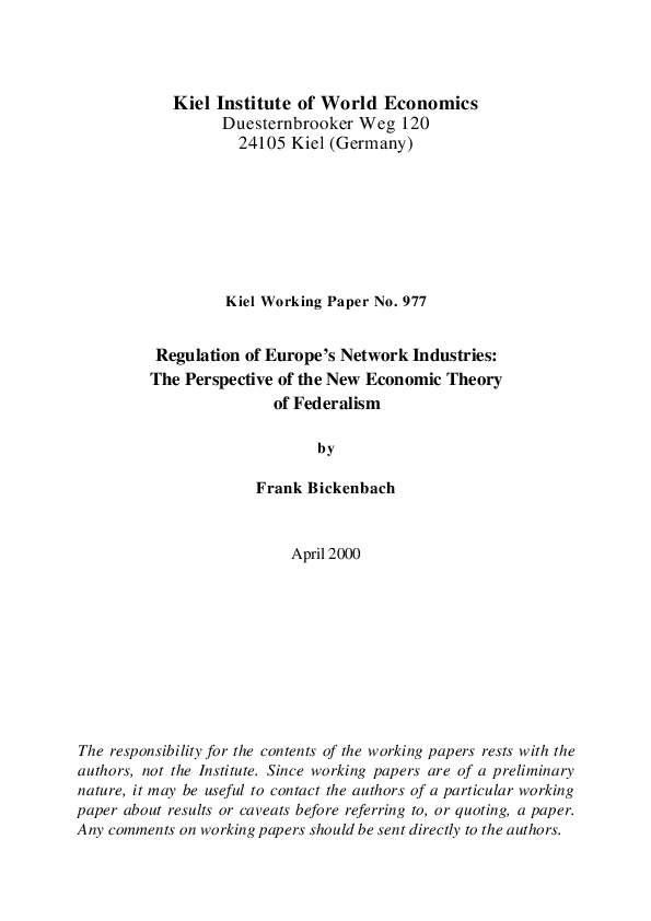 Regulation of Europe's Network Industries: The Perspective of the New Economic Theory of Federalism