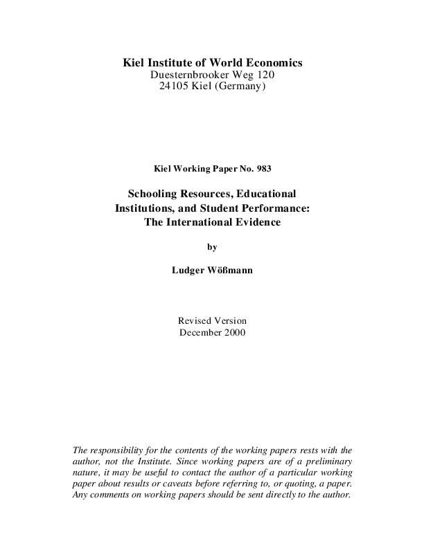 Schooling Resources, Educational Institutions, and Student Performance: The International Evidence