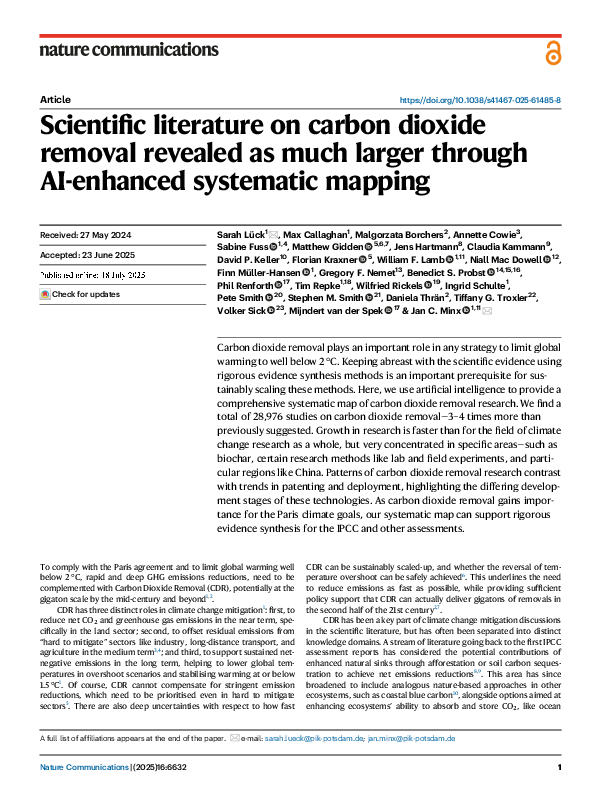 Scientific literature on carbon dioxide removal revealed as much larger through AI-enhanced systematic mapping