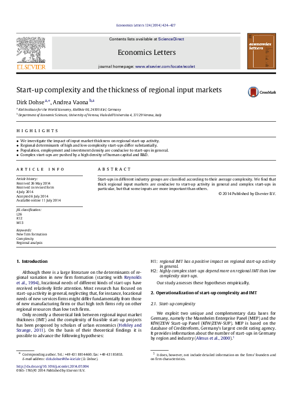 Start-ups in different industry groups are classified according to their average complexity. We find that thick regional input markets are conducive to start-up activity in general and complex start-ups in particular, but that some inputs are more important than others.