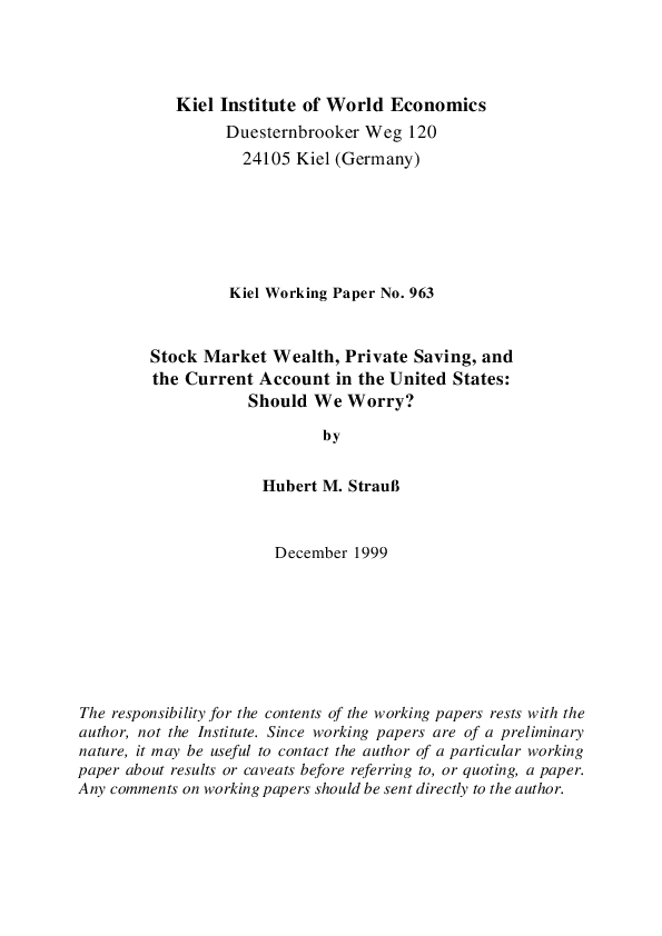 Stock Market Wealth, Private Saving, and the Current Account in the United States: Should We Worry?