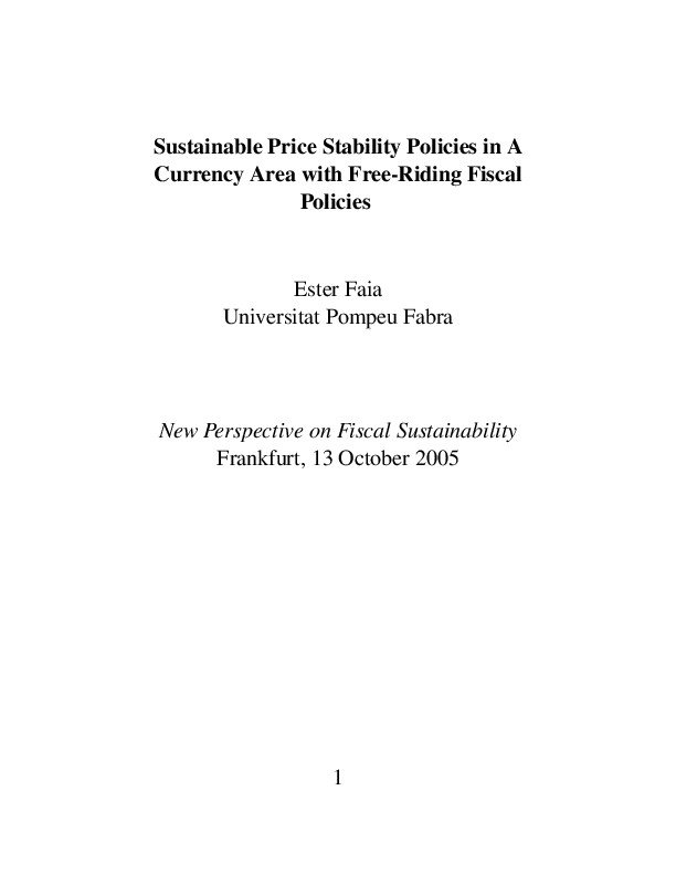 Sustainable Price Stability Policies in a Currency Area with Free-Riding Fiscal Policies