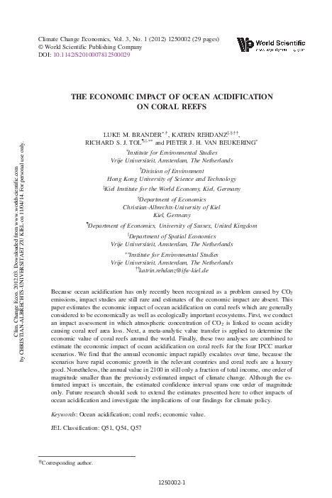 The Economic Impact of Ocean Acidification on Coral Reefs