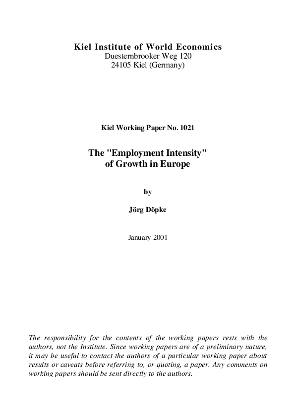 The paper elaborates on the employment intensity of growth. Previous evidence regarding this question is surveyed. Empirical results concerning Europe and selected other industrial countries reveal that the cyclical link between unemployment and growth is still stable in the nineties. However, the relation strongly depends on the variable chosen to represent the labor market situation. Test on an asymmetric relation leads to ambitious results. Cross-country and panel evidence suggest that the employment intensity of growth is influenced by the country's wage setting process, the share of the service sector, and labor market flexibility. A clear-cut importance of exchange rate volatility cannot be found. Some conclusions with regard to economic policy are drawn.