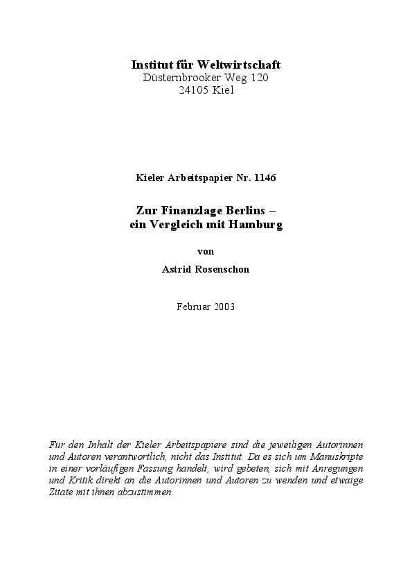 The financial position of the Land Berlin – compared to that of Hamburg (original publication in German)