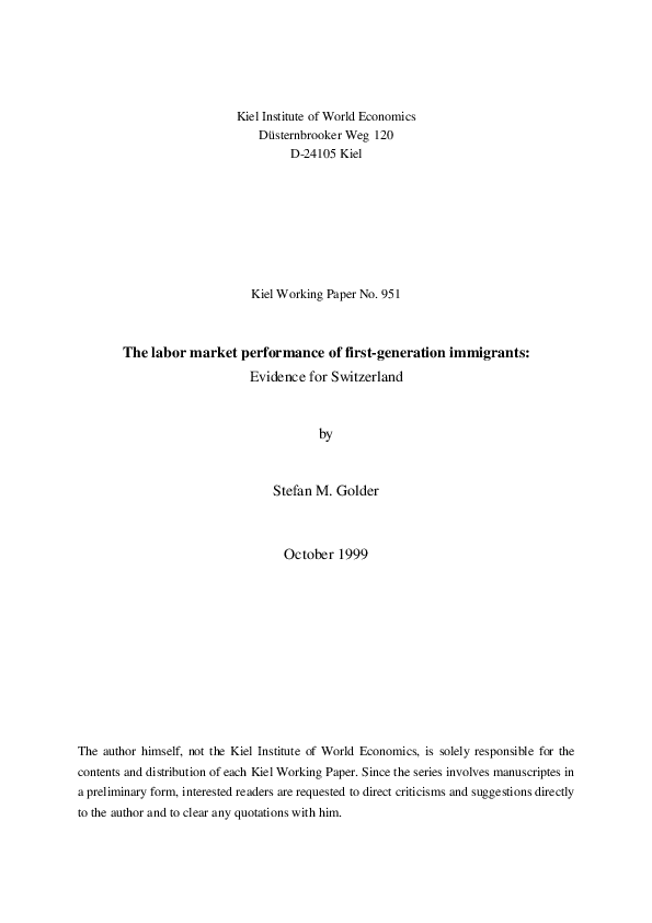The Labor Market Performance of First-Generation Immigrants: Evidence for Switzerland