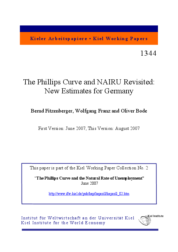 The Phillips Curve and NAIRU Revisited: New Estimates for Germany