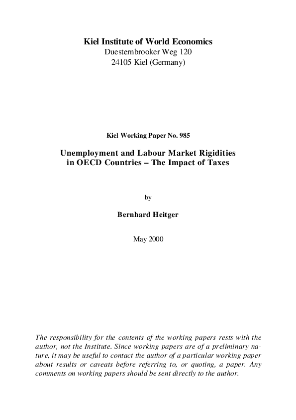 Unemployment and Labour Market Rigidities in OECD Countries - The Impact of Taxes