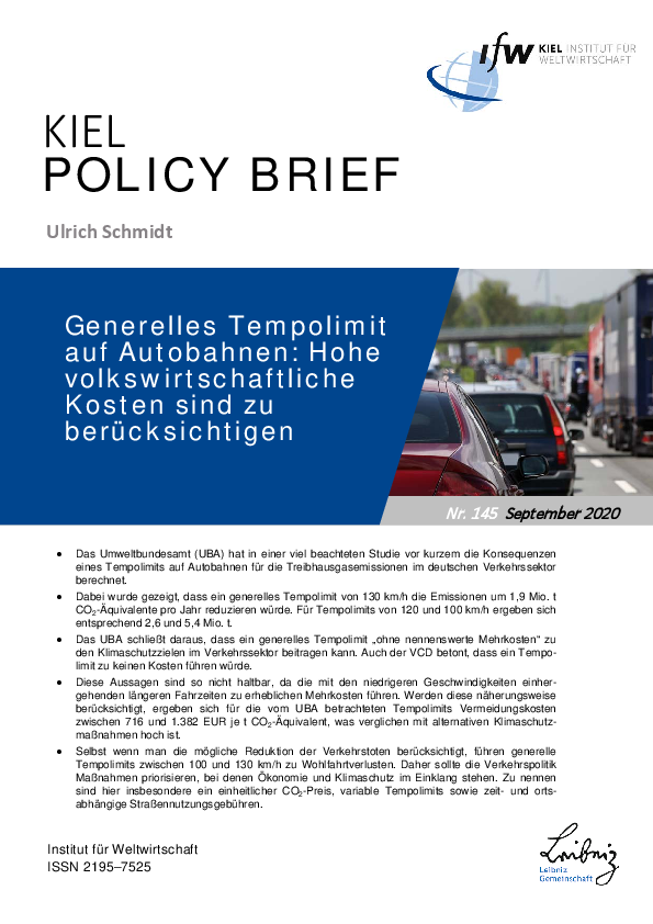 Universal Speed Limit on German Highways: High Economic Costs Need to Be Taken into Account