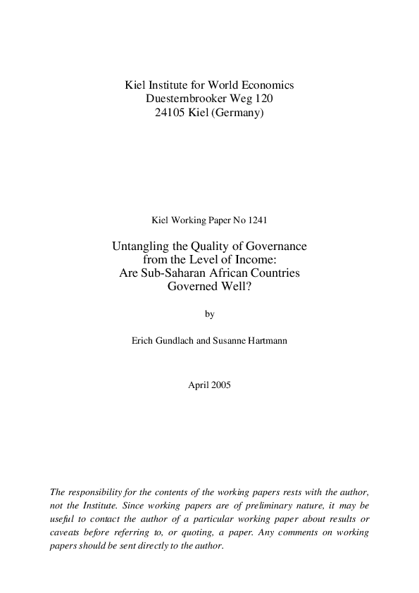 Untangling the Quality of Governance from the Level of Income: Are Sub-Saharan African Countries Governed Well?